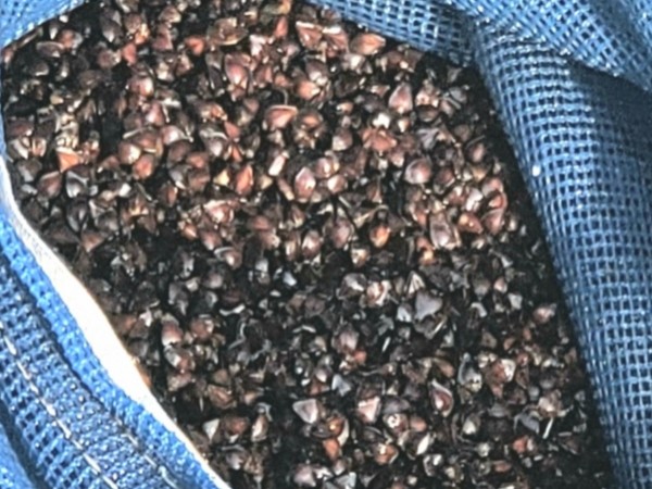 「大寒」に水漬けした玄そばを、本日引き揚げました。