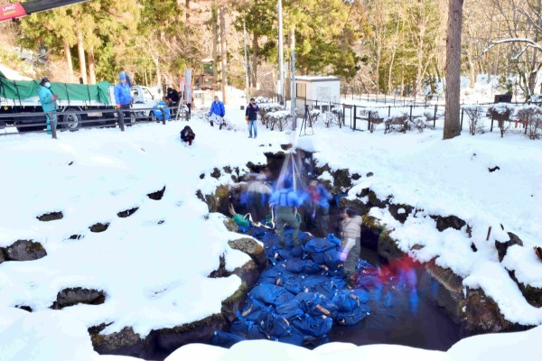 > 「寒ざらしそば」水揚げ作業