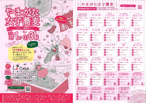 3月1日から始まる「やまがた女子蕎麦」のチラシができがりました。
